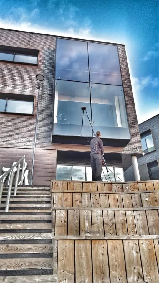 Fațadele din sticlă, metal, panouri compozite, beton, tencuială decorativă sau cărămidă aparentă sunt curățate cu atenție, redându-le strălucirea și imaginea profesională. Se acordă o atenție deosebită geamurilor, tâmplăriei exterioare și zonelor greu accesibile, asigurând o curățenie impecabilă, inclusiv la înălțime, prin tehnici de alpinism utilitar sau echipamente mecanizate.